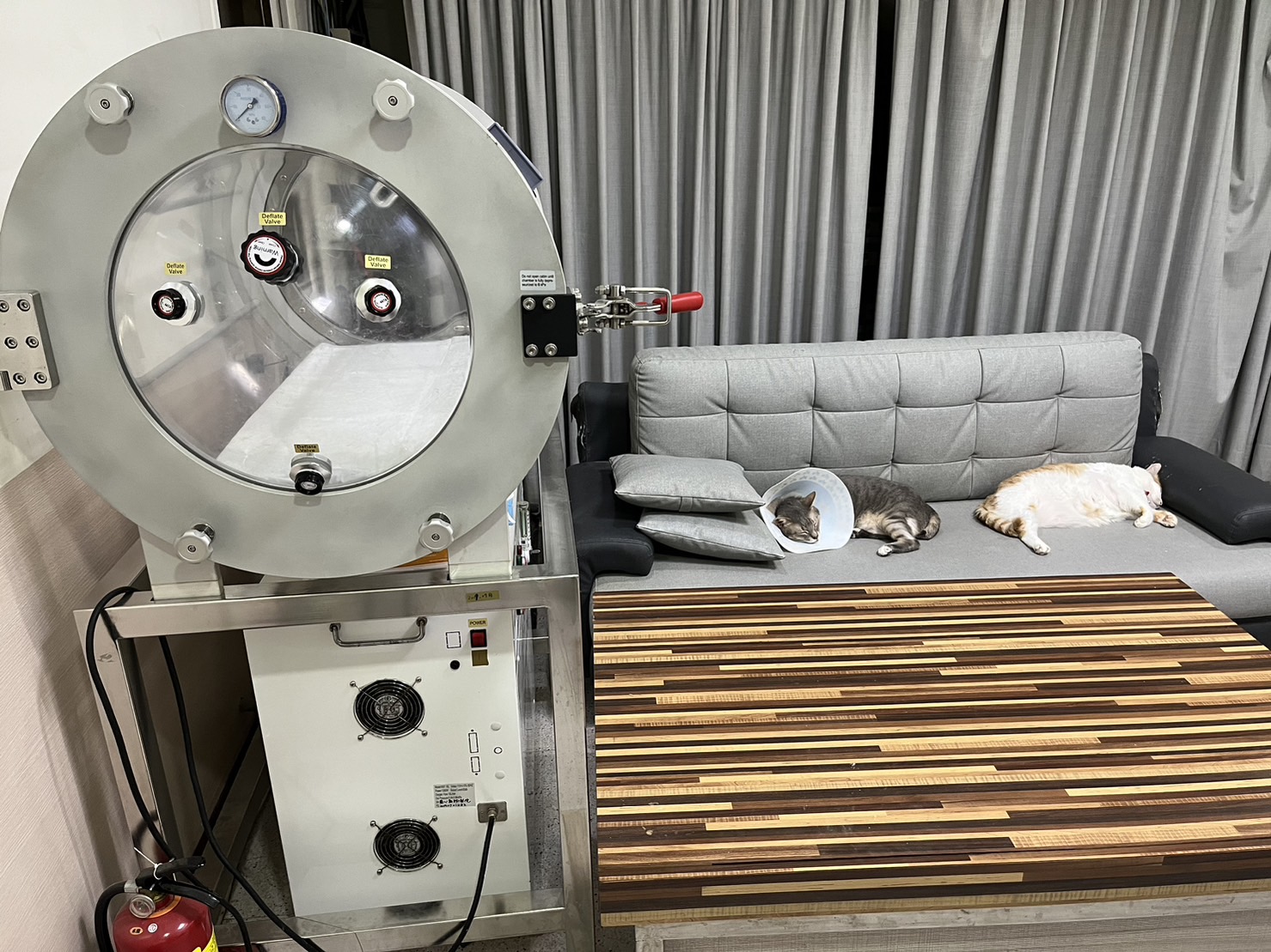 設有高壓氧治療的陪伴區,讓主人的陪伴能舒緩毛小孩的緊張情緒