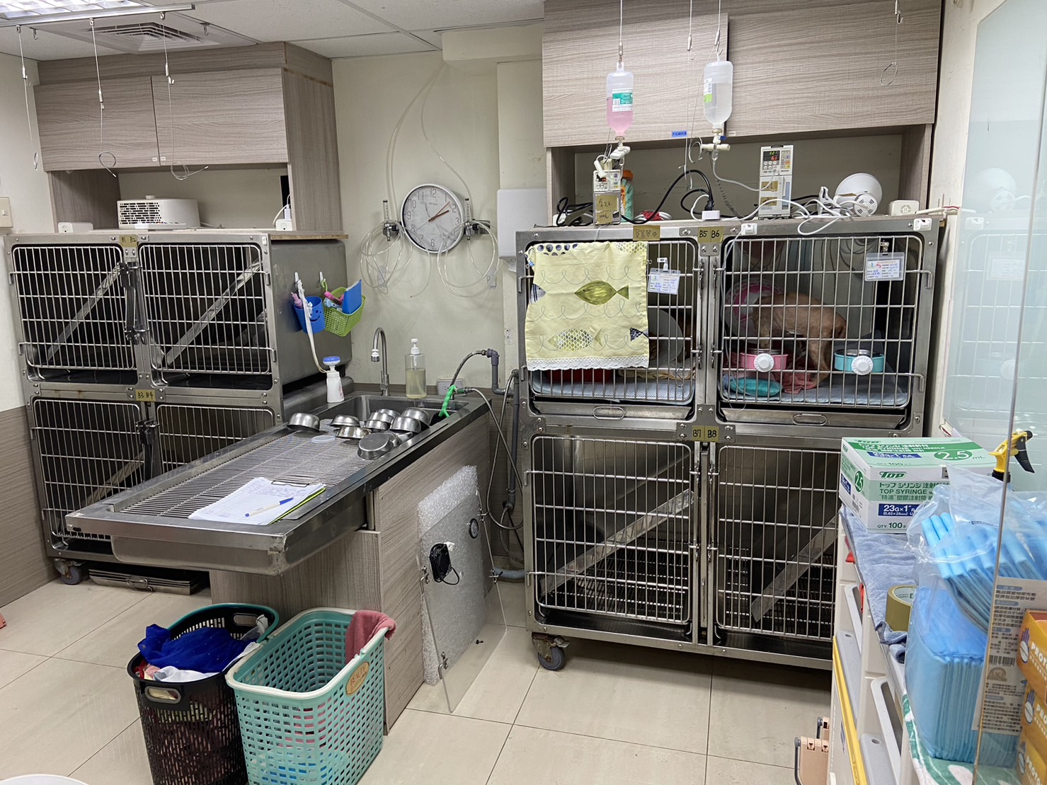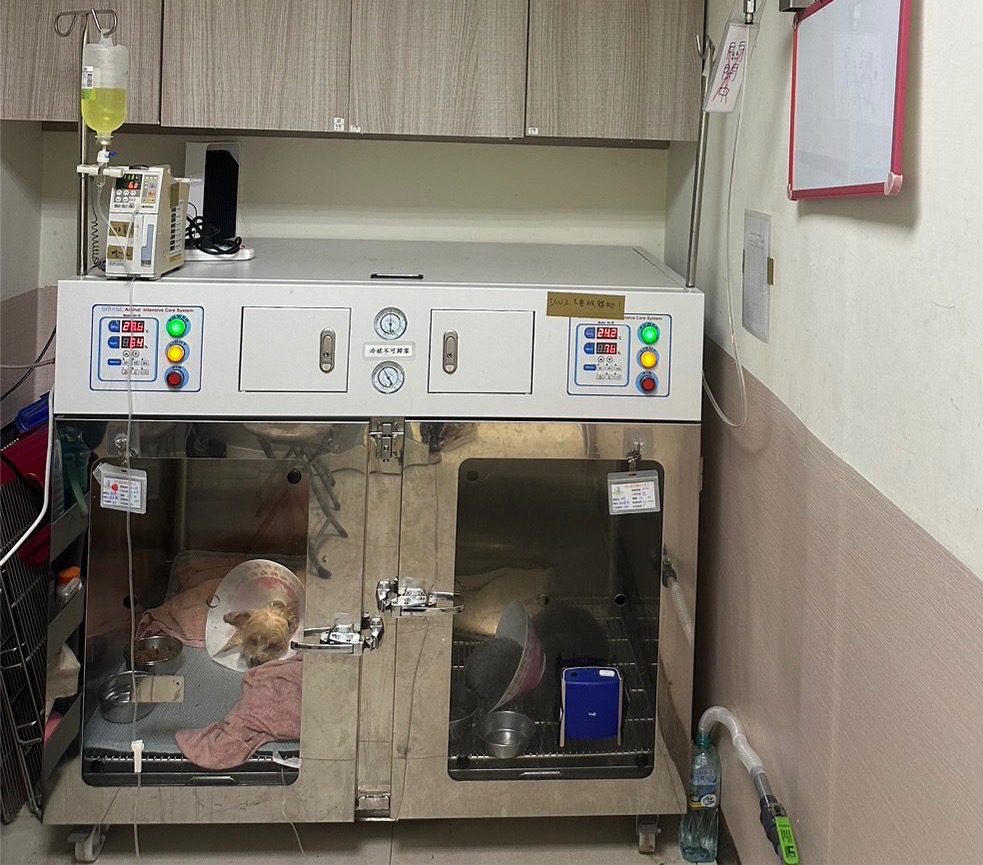分開狗貓、讓貓貓減少住院緊迫,增設大型犬專用病房,有足夠的住院空間,隔離病房收治傳染病動物,ICU病房收治重症加護需要氧氣治療的動物,病房內設有專用空調,同時可以控制溫度及濕度
