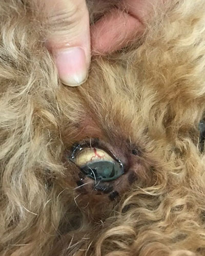 來到築心就診,檢查發現Coco的眼皮、耳殼的皮膚、嘴巴黏膜、肚皮都有嚴重的黃疸!另外拉Coco的皮也發現回彈的速度比一般健康動物緩慢,顯示有脫水,觸診腹部會疼痛哀叫。