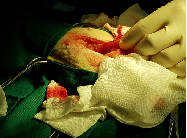 開腹發現膽囊明顯脹大,膽管嚴重擴張