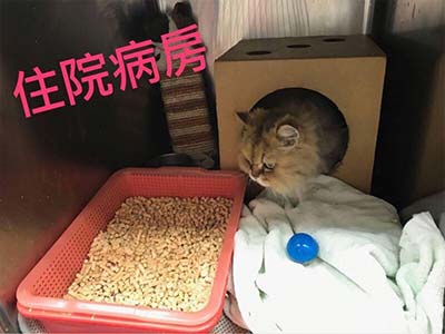 - 獨立貓咪專屬住院病房,隔絕會讓貓咪緊張的狗狗氣味及吠叫,籠內放置睡墊及躲藏小窩