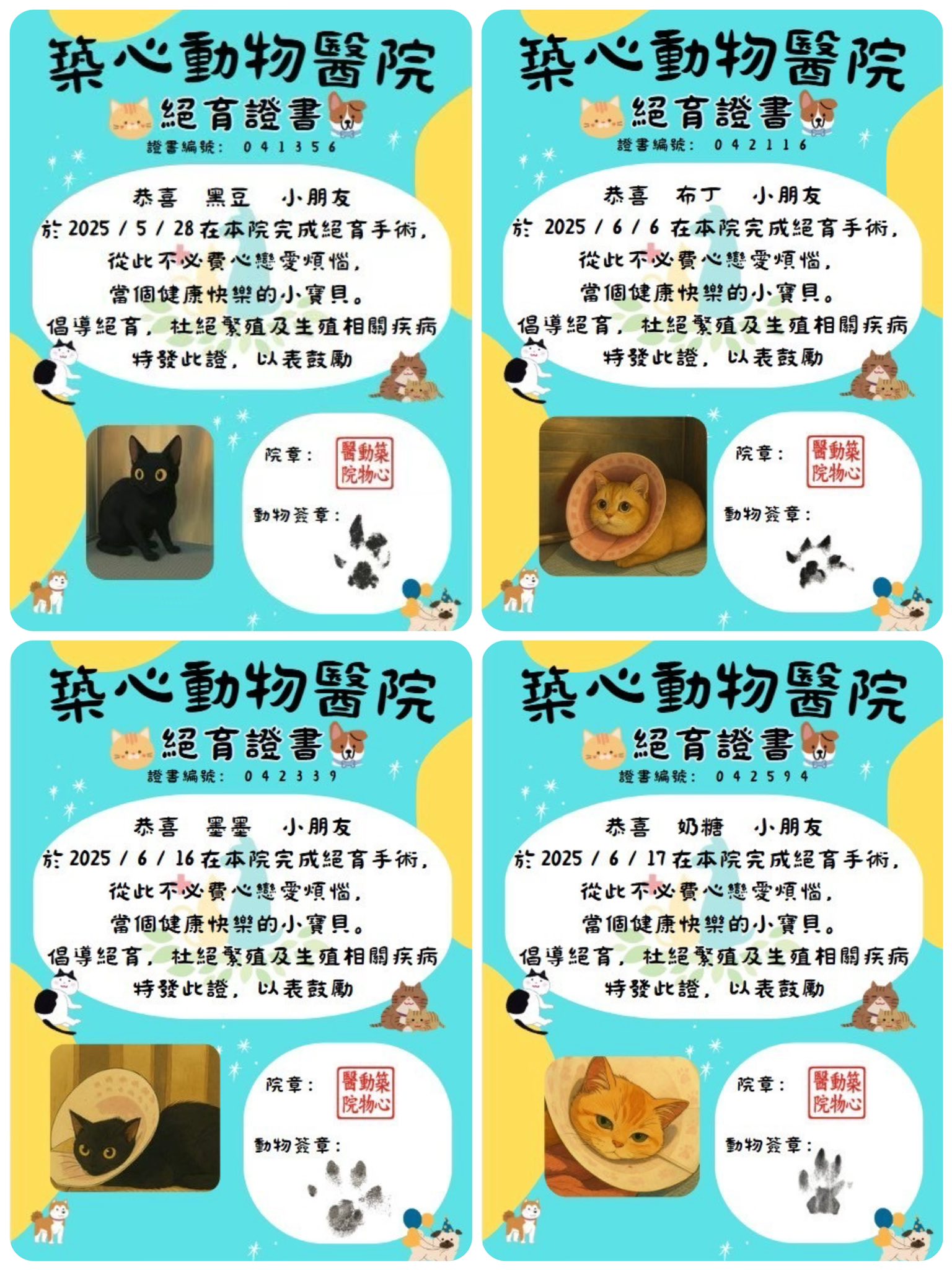 絕育小勇士大集合! 首頁 病例分享 日常分享 絕育小勇士大集合! 絕育小勇士大集合! 這幾個月,我們陸續完成好多寶貝的絕育手術 每一隻都是勇敢的小英雄,從緊張進手術室、戴上小喇叭,到現在健康快樂奔跑中 來給他們一個大大的掌聲吧!! #絕育 #築心動物醫院 #結紮 #微創手術 #可愛爆擊 #動物小手印