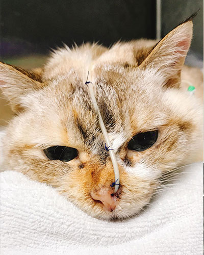 脂肪肝的貓咪一般建議放置鼻胃管,貓咪大部分不需要麻醉,能夠讓餵食計畫更順利、大幅減少貓咪被強灌食的緊迫,可以讓主人提早出院回家照顧,顯著減少住院的時間喔!