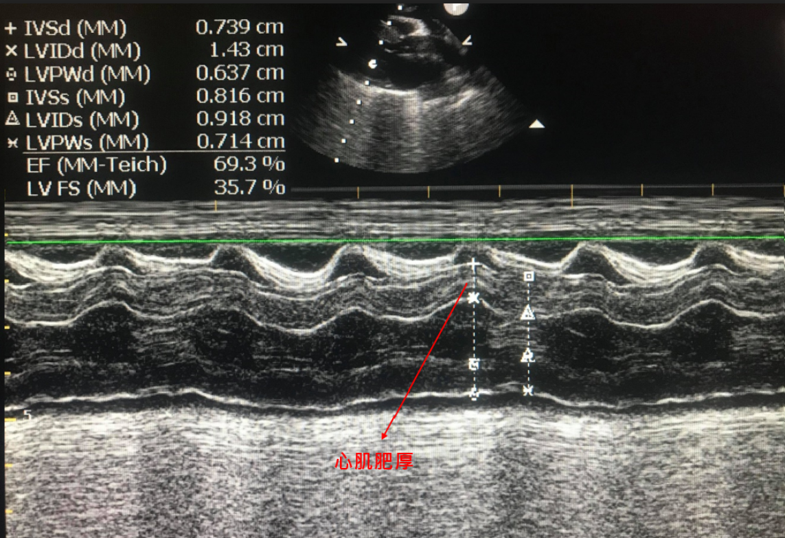 有天主人帶著一隻美國短毛貓來診間,主人形容貓咪右後肢無法行走,後肢只能用拖行前進,經理學檢查後,我們懷疑為血栓造成,進一步用心臟超音波檢查、確診為「肥厚性心肌病」導致血栓產生,因為這樣的診斷,醫師團隊更能針對症狀給予正確的治療方式,而後貓咪也有所改善。